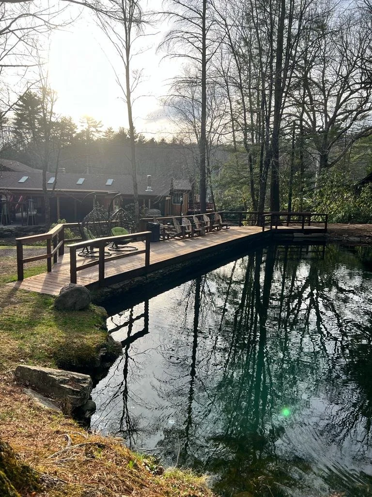 Authentic cabins, views of a breathtaking mountain stream, wooden decks, an outdoor pool, hammocks and camp fires are enjoyed after a day at the wellness center and spa resulting in a weekend of pure bliss